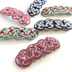 ****************************** 「水引(Mizuhiki)」は、和紙のこよりと絹糸などで作られた日本独自の素材です。 人と人を結ぶと言う意味などがあるそうです。 "Mizuhiki" It is original Japanese material made of Japanese paper and silk thread. It is used for gift wrapping in Japan. ****************************** 台湾の伝統的な模様が描かれた布『客家花布』のような イメージで結んだバレッタです。 6本の水引全てが違う色 しかも、キラキラのラメ系の水引なので 華やかでレトロで個性的な唯一無二のアクセサリーになりました。 水引は和風のイメージですが、 ワンピースやエスニックなファッションにも、 カジュアルにTシャツとジーンズでも似合います。 もちろん着物や浴衣ならピッタリですね♪ 普段使いから、お出かけまで まとめ髪の時に幅広くお使いいただける髪飾りです。 また、日本らしい素材で作られていますので 外国の方への贈り物にもおススメです。 他サイトでも同時に販売しておりますので 入れ違いで売り切れの場合がございます。 ご了承くださいませ。 ★サイズ 10.5cm×4cmくらい 【注意事項】 水引は紙素材ですので、多少の水分では問題ありませんが洗濯などはできません。 汗や直射日光に照らされたり、摩擦や経年劣化により色褪せや毛羽立ちすることがあります。 無理な力を加えたりしますと、モチーフが取れたり変形したりすることがあります。 繊細な素材なので、お取り扱いにはご注意ください。 金属アレルギーをお持ちの方は、ご使用をご遠慮ください。 お手持ちの端末により、写真の色味が若干違う場合があります。 お届けにつきましては、丁寧な梱包を心がけていますが、 配送時の破損、紛失に関しては補償出来かねますので予めご了承ください。 土日祝日が入りますと、発送が遅れることがあります。 送料削減のため、簡易包装を心がけておりますのでご了承のうえ、ご購入をお願いします。