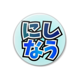 『にしなう』ロゴの缶バッジです。 サンプル画像は完成イメージのため、実物と異なる場合があります。