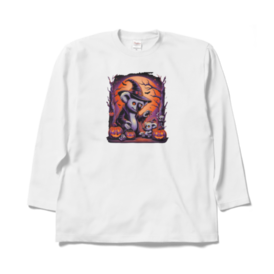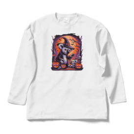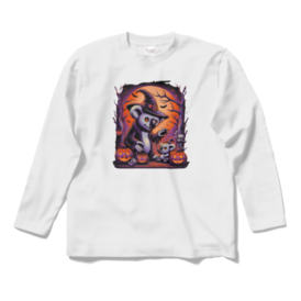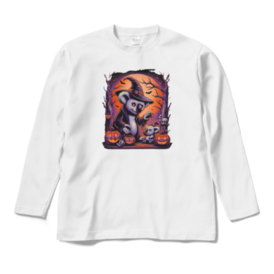 ロングスリーブTシャツ - XL - ホワイトコアラの親子がハロウィンの魔法に包まれています!お母さんコアラは、カラフルなハロウィンの衣装を身にまとい、子供コアラと一緒に楽しい冒険に出かけようとしています。 この商品はpixivFACTORYで作られた商品です。サンプル画像は完成イメージのため、実物と異なる場合があります。