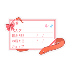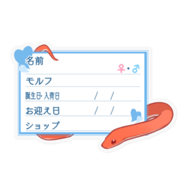 防水仕様のお名前ステッカーです🐍 マジックでご記入後、ケージなどに貼ってお使い下さい✨ お名前ステッカー一覧 → https://blue-tetra.booth.pm/item_lists/mLdTYVqm DLデータ版 → https://blue-tetra.booth.pm/item_lists/myVTMMPV ≪フレームラインナップ≫ 1.蔦 2.蔦(英語) 3.お菓子 4.お菓子(英語) 5.ハート/ピンク 6.ハート/ピンク(英語) 7.ひまわり 8.ひまわり(英語) 9.もみじ 10.もみじ(英語) 11.リボン/ピンク 12.リボン/ピンク(英語) 13.星 14.星(英語) 15.ハート/ブルー 16.ハート/ブルー(英語) 17.リボン/ブルー 18.リボン/ブルー(英語) 19.雪 20.雪(英語) 21.夜 22.夜(英語) サイズは幅8.5cm前後です。 サイズ指定やホワイト(透明でないもの)、項目の変更、モルフの追加等ご希望ございましたら、メッセージ等でお気軽にご相談下さい(*'ω'*) この商品はpixivFACTORYで作られた商品です。サンプル画像は完成イメージのため、実物と異なる場合があります。