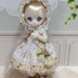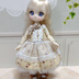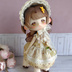 (イエロー) ・ドレス ・ハーフボンネット ・ペチコート(白) ・ガラスドームとすずらんのポシェット ・共布のリボンカチューシャ ◇ポシェット チェーンカラー ゴールド ガラスドームの星の欠片 淡イエロー ◇ドレスは後ろスナップ留め2箇所 背中全開します ハンドパーツは外さず着用出来ます 肩紐レースに指を引っ掛けない様にそっと通して下さい ◇ペチコートは上部1cmほど面ファスナー留め ※下部は縫留めてますので全開しません ◇ハーフボンネットはレースリボンを顎下に結んで固定する仕様です ◇共布のリボンカチューシャ 平ワイヤー使用、ヘッドサイズに合わせて調節可能です ◆ピコニーモP(シュガーカップス)推奨 ※オビツ11も着用可能ですがローウェスト気味で着丈が長くなります ※4つ足アンティーユにも入りますがお尻が見えます(/ω\;)→ペチコートは使用不可 ◆ピコP、オビツ11ボディ共に1ヵ月程色移りテストしました 色移りは確認出来ませんでしたが、念の為長期間着せたままでのご使用はお控えください