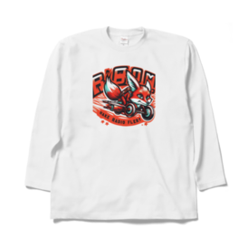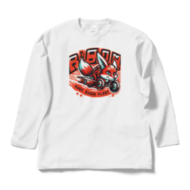 ロングスリーブTシャツ - XL - ホワイト未来の世界で颯爽と駆け抜けるキツネ。彼の乗り物は、まるで風を切るように滑らかで、宇宙の彼方まで飛び立ちそうなデザイン。 この商品はpixivFACTORYで作られた商品です。サンプル画像は完成イメージのため、実物と異なる場合があります。