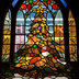 【イラスト素材】ステンドグラスのクリスマスツリー
