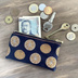 【みかん】畳縁 ぺたんこ ミニポーチ 小銭入れ カードケース 柑橘 オレンジ シトラス 紺 藍色