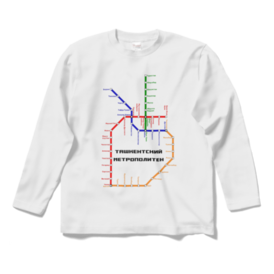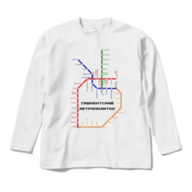 タシケント地下鉄路線図 長袖Tシャツ 白・黒