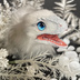ご覧いただきありがとうございます。 作家のcavalisaです。 アートドール作品をメインに製作しております。 作品の販売に関する情報は主にX(@to_aves)で発信しております。よろしくお願いします。 __________ 𓇬𓇬𓇬 ナヌークサウルスの赤ちゃん𓇬𓇬𓇬 Nanuqsaurus 誕生日 11/26 [作品について] ナヌークサウルスという羽毛恐竜がモチーフのアートドールです。 アートドールとは、ポージングが出来るぬいぐるみとフィギュアの中間のような作品です。 この作品は口が開閉するだけでなく、全身を動かすことができます。 ナヌークサウルスは恐竜時代の終盤に現在の北米アラスカ州に生息していた恐竜です。 ナヌークサウルスの化石は1体のみ見つかっています。その化石は14歳でまだ成長中の個体だったそうです。本作はその子に思いを馳せながら作りました。 7000万年前のアラスカには日が上らない極夜の時期がありました。その環境を生き抜くのは楽ではなかったようです。生き物は寒い地域ほど体が大きくなるところナヌークサウルスは小柄で、これは食糧不足が原因だったと言われています。 14歳のナヌークサウルスも寒く厳しい夜の世界を懸命に生きたのだと思います。 どうして大人になる前に命が尽きてしまったのか、それはもう誰にも分かりません。 恐竜たちはアラスカの色鮮やかなオーロラを見上げて何を思ったでしょうか。 青色の瞳は夜空の星やオーロラが反射したようなデザインになっています。 寒い地域に適応していたという想定で全身毛足長めの毛に覆われ、背中は毛先が少し黒くなっています。 ナヌークサウルスはティラノサウルスの遠縁にあたる恐竜なので、前足の指は2本で復元しました。 顔の骨格は本種の化石の特徴である鋭い鼻筋を表現し、ティラノサウルスのような肉厚で丸みのある唇に造形しました。 __________ [大きさ] 体高 15cm 体長 25cm 重さ 94g __________ [お取扱い注意点] -本作品はポージング出来る立体作品です。可動部位は 顎・首・ボディ・四肢・尻尾です。 -爪、足、顎などの作りはデリケートですので優しく扱ってください。 -可動部位の芯材はテクノロートとワイヤーを併用しております。金属疲労の可能性は低い作品ではありますが急な角度に曲げることはお避けください。 -作品が汚れてしまった場合: 軽い水拭きに耐えられます。お顔と手足は優しく拭いてあげてください。 -毛並みが乱れた時は犬猫用ブラシまたは歯ブラシで梳かして頂きますと元通りになります。 -修繕が必要になった場合はご連絡ください。有償にて修繕承ります。 -材質: フェイクファー、アルミワイヤー、アクリル絵具、UVレジン等 __________ ⋆*こちらに掲載しきれなかった写真や動画はX(@to_aves), Instagram(@cavalisa_artdoll)にアップさせて頂きます⋆* ご質問等ございましたら気軽にご質問くださいませ。