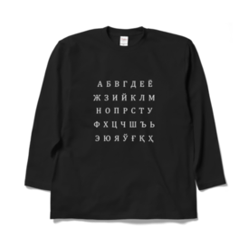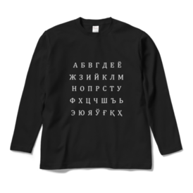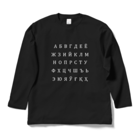 ウズベク語キリル文字アルファベット単色 長袖Tシャツ 白・黒