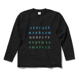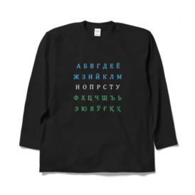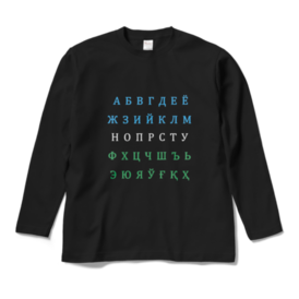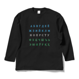 ウズベク語キリル文字アルファベット国旗カラー 長袖Tシャツ 黒