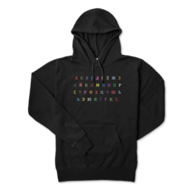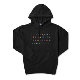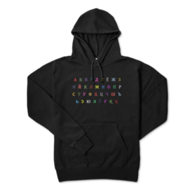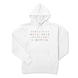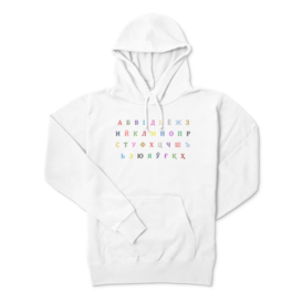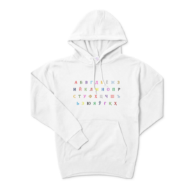 ウズベク語キリル文字アルファベットカラフル パーカー 白・黒