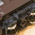 42系用はできるだけ汚物を内側に落とすため、下部がR形状となります。 1セット5個(5両分)となります。 作例の手順としては ・サポート材から切り離し ・必要に応じて裏側等の二次硬化 ・つや消しブラックで塗装 ・ゴム系や瞬間接着剤などで「台車に」貼り付け となります。 台車側に取り付ける事により、急カーブでも問題ありません。