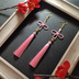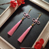 【和風】【ゴールドビーズ】几帳結びとタッセルのピアス(イヤリング)(薄ピンク)【チャイナ】【中華風】【成人式】【卒業式】