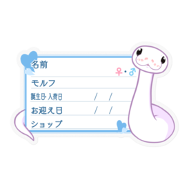 防水仕様のお名前ステッカーです🐍 マジックでご記入後、ケージなどに貼ってお使い下さい✨ ★文字を入れた状態での納品をご希望の場合、ご希望の商品名と、下記項目をわかる範囲でメッセージにてお伝えください🍀 ・お名前 ・性別 ・モルフ名 ・誕生日or入荷日 ・お迎え日 ・購入したショップ名 お名前ステッカー一覧 → https://blue-tetra.booth.pm/item_lists/mLdTYVqm DLデータ版 → https://blue-tetra.booth.pm/item_lists/myVTMMPV ≪フレームラインナップ≫ 1.ツタ 2.ツタ(英語) 3.お菓子 4.お菓子(英語) 5.ハート/ピンク 6.ハート/ピンク(英語) 7.ひまわり 8.ひまわり(英語) 9.もみじ 10.もみじ(英語) 11.リボン/ピンク 12.リボン/ピンク(英語) 13.星 14.星(英語) 15.ハート/ブルー 16.ハート/ブルー(英語) 17.リボン/ブルー 18.リボン/ブルー(英語) 19.雪 20.雪(英語) 21.夜 22.夜(英語) サイズは幅8.5cm前後です。 その他サイズ指定やホワイト(透明でないもの)、項目の変更、モルフの追加等ご希望ございましたら、メッセージ等でお気軽にご相談下さい(*'ω'*) この商品はpixivFACTORYで作られた商品です。サンプル画像は完成イメージのため、実物と異なる場合があります。