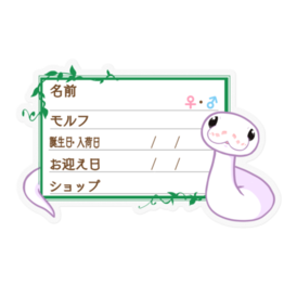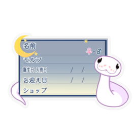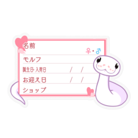 防水仕様のお名前ステッカーです🐍 マジックでご記入後、ケージなどに貼ってお使い下さい✨ ★文字を入れた状態での納品をご希望の場合、ご希望の商品名と、下記項目をわかる範囲でメッセージにてお伝えください🍀 ・お名前 ・性別 ・モルフ名 ・誕生日or入荷日 ・お迎え日 ・購入したショップ名 お名前ステッカー一覧 → https://blue-tetra.booth.pm/item_lists/mLdTYVqm DLデータ版 → https://blue-tetra.booth.pm/item_lists/myVTMMPV ≪フレームラインナップ≫ 1.ツタ 2.ツタ(英語) 3.お菓子 4.お菓子(英語) 5.ハート/ピンク 6.ハート/ピンク(英語) 7.ひまわり 8.ひまわり(英語) 9.もみじ 10.もみじ(英語) 11.リボン/ピンク 12.リボン/ピンク(英語) 13.星 14.星(英語) 15.ハート/ブルー 16.ハート/ブルー(英語) 17.リボン/ブルー 18.リボン/ブルー(英語) 19.雪 20.雪(英語) 21.夜 22.夜(英語) サイズは幅8.5cm前後です。 その他サイズ指定やホワイト(透明でないもの)、項目の変更、モルフの追加等ご希望ございましたら、メッセージ等でお気軽にご相談下さい(*'ω'*) この商品はpixivFACTORYで作られた商品です。サンプル画像は完成イメージのため、実物と異なる場合があります。