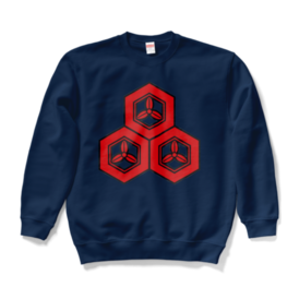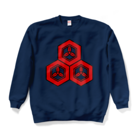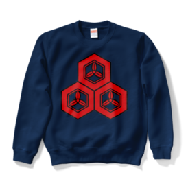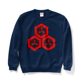 直江兼続 家紋 三つ盛亀甲に三つ葉 スウェット 紺に赤