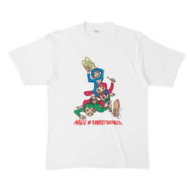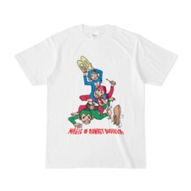 Tシャツ - XL - 白はちゃめちゃ、めちゃくちゃ、いいかげん! おサルのはったり! 案出し:ぺったらこ イラスト:RURUKO この商品はpixivFACTORYで作られた商品です。サンプル画像は完成イメージのため、実物と異なる場合があります。