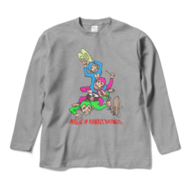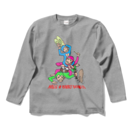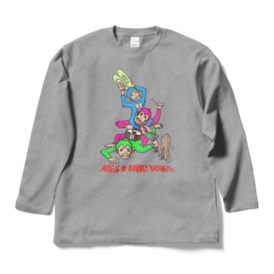 ロングスリーブTシャツ - XL - 杢グレーはちゃめちゃ、めちゃくちゃ、いいかげん! おサルのはったり! 案出し:ぺったらこ イラスト:RURUKO この商品はpixivFACTORYで作られた商品です。サンプル画像は完成イメージのため、実物と異なる場合があります。