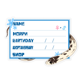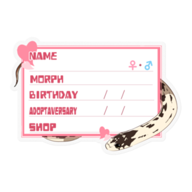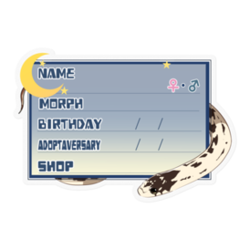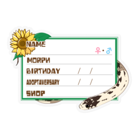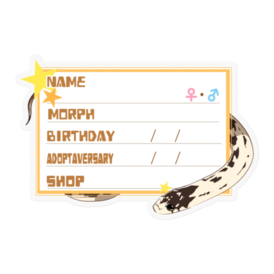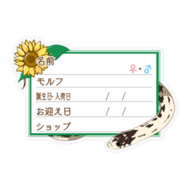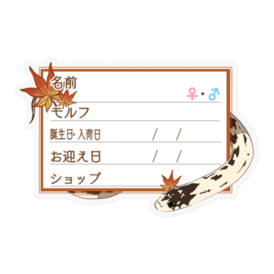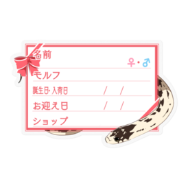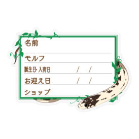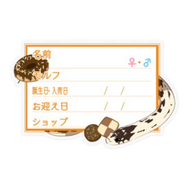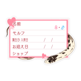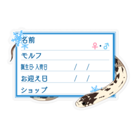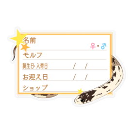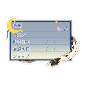 【🐍お名前ステッカー】カリキン(バナナ) ‐夜(英語)防水仕様のお名前ステッカーです🐍 マジックでご記入後、ケージなどに貼ってお使い下さい✨ ★文字を入れた状態でのお届けをご希望の場合、ご希望の商品名と、下記項目をわかる範囲でメッセージにてお伝えください🍀 ・お名前 ・性別 ・モルフ名 ・誕生日or入荷日 ・お迎え日 ・購入したショップ名 お名前ステッカー一覧 → https://blue-tetra.booth.pm/item_lists/mLdTYVqm DLデータ版 → https://blue-tetra.booth.pm/item_lists/myVTMMPV ≪フレームラインナップ≫ 1.ツタ 2.ツタ(英語) 3.お菓子 4.お菓子(英語) 5.ハート/ピンク 6.ハート/ピンク(英語) 7.ひまわり 8.ひまわり(英語) 9.もみじ 10.もみじ(英語) 11.リボン/ピンク 12.リボン/ピンク(英語) 13.星 14.星(英語) 15.ハート/ブルー 16.ハート/ブルー(英語) 17.リボン/ブルー 18.リボン/ブルー(英語) 19.雪 20.雪(英語) 21.夜 22.夜(英語) サイズは幅8.5cm前後です。 その他サイズ指定やホワイト(透明でないもの)、項目の変更、モルフの追加等ご希望ございましたら、メッセージ等でお気軽にご相談下さい(*'ω'*) この商品はpixivFACTORYで作られた商品です。サンプル画像は完成イメージのため、実物と異なる場合があります。