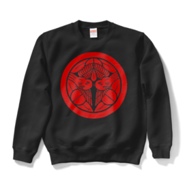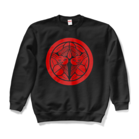 上杉謙信 家紋 竹に飛び雀 スウェット 黒に赤