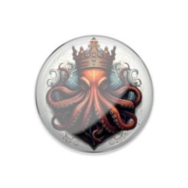 王冠を被った蛸のエンブレムのピンバッジ。 蛸好きをアピールしよう。 この商品はpixivFACTORYで作られた商品です。サンプル画像は完成イメージのため、実物と異なる場合があります。