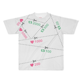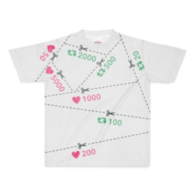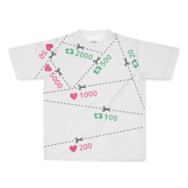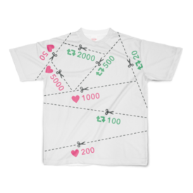何とは言わないが切り取り線と数字が描かれたTシャツ 多分,ぶかぶかになるように自分のサイズより1つ大きいサイズを買うとよい この商品はpixivFACTORYで作られた商品です。サンプル画像は完成イメージのため、実物と異なる場合があります。