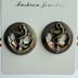 ヴィンテージボタンを足切りして、イヤリングに加工しました。 同じボタンを使用して、ちょっと手を加えて、ピアス兼用もありますがそれは追々出品します。 金古美ってあまり興味はなかったんですが、土佐組を扱うようになって取り入れる頻度が増えて、ようやく良さに気付きました。 直径約2.8~3cmです。 イヤリング金具は背面貼り付け式です。 ●アレルギー対応商品について 当店ではピアス、イヤリング、チェーン、アジャスター等にサージカルステンレス316を使用時明記しております。 体質には個人差がありますので、必ずしもアレルギーが出ないという保証ではございません。 樹脂ピアスも取り扱っておりますので、そちらもご検討下さい。 ●色褪せ・錆について ステンレス以外の、錆びやすい材質のパーツとの組み合わせの場合、そのパーツの錆びがステンレス表面に付着し「もらい錆」により錆びてしまうケースがございます。 その際は錆びをすぐに除去するようにしてください。 また、水に濡らしたりアルコール・汗等が付着しないようご注意下さい。 ●レジン作品について レジン作品は非常に繊細な為、強い衝撃を与えたり、高温・直射日光に長時間さらさないようご留意下さい。 また、水濡れやアルコール、汗などは劣化の原因となる為、触れないようにご注意下さい。