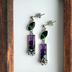天然石と刀剣男士シリーズはちょっと一休みして(大量に作り過ぎた)ちょっと他のキャラを。「天江戸は幾何学」のテーマで作った、水心子くんです。 お花の意味は、歌って踊れる某本丸であった●暦をイメージして。 (2.5概念もりもりですみませぬ) グリーンの石は瞳カラーのイメージです。 思いついてから、半年かかってずっと作りたかったデザインなんですよ。 出来た時期によって、お花の種類も変わりそうな予感。 ピアス・イヤリング両対応ですので、お好みの金具でご購入下さい。 ●アレルギー対応商品について 当店ではピアス、イヤリング、チェーン、アジャスター等にサージカルステンレス316を使用時明記しております。 体質には個人差がありますので、必ずしもアレルギーが出ないという保証ではございません。 樹脂ピアスも取り扱っておりますので、そちらもご検討下さい。 ●色褪せ・錆について ステンレス以外の、錆びやすい材質のパーツとの組み合わせの場合、そのパーツの錆びがステンレス表面に付着し「もらい錆」により錆びてしまうケースがございます。 その際は錆びをすぐに除去するようにしてください。 また、水に濡らしたりアルコール・汗等が付着しないようご注意下さい。 ●レジン作品について レジン作品は非常に繊細な為、強い衝撃を与えたり、高温・直射日光に長時間さらさないようご留意下さい。 また、水濡れやアルコール、汗などは劣化の原因となる為、触れないようにご注意下さい。
