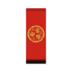 なるわん座招福家紋ミニタペストリー・蔓三ツ葵ノ丸(赤)