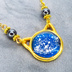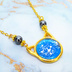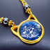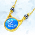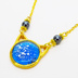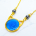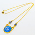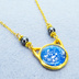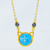 ゴールドカラー 猫フェイスモチーフのブルーキャットペンダントネックレス スワロフスキー レジン 長さ調整可