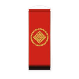 なるわん座招福家紋ミニタペストリー・隅立テ紗綾形稲妻(赤)