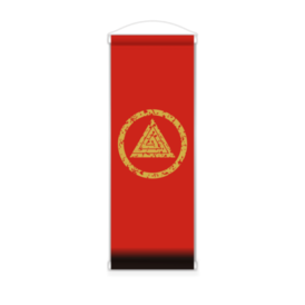 なるわん座招福家紋ミニタペストリー・三角稲妻(赤)
