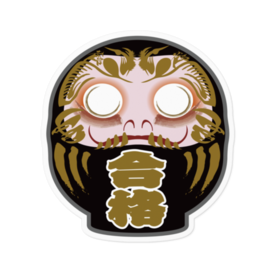 なるわん座招福ステッカー・合格だるま黒(黒)