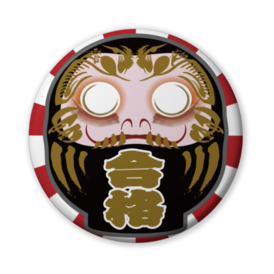 なるわん座招福缶バッジ(バリュー)・合格だるま(黒・日足)