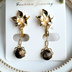 フラワーモチーフのトップに、カッパーカルサイトオブシディアンという人工石を使っています。文字通り、銅とカルサイトとオブシディアン(黒曜石)を圧縮合成した人工石です。もう少し大きなサイズを選べば良かったな?と思っていますが、これ高いので…。 石のイメージはまさしく光忠さん(私の中で光忠は燭台切だけ)なので、次はもうちょっとカッコ良いデザインを考えてみようーと思っています。 ●アレルギー対応商品について 当店ではピアス、イヤリング、チェーン、アジャスター等にサージカルステンレス316を使用時明記しております。 体質には個人差がありますので、必ずしもアレルギーが出ないという保証ではございません。 樹脂ピアスも取り扱っておりますので、そちらもご検討下さい。 ●色褪せ・錆について ステンレス以外の、錆びやすい材質のパーツとの組み合わせの場合、そのパーツの錆びがステンレス表面に付着し「もらい錆」により錆びてしまうケースがございます。 その際は錆びをすぐに除去するようにしてください。 また、水に濡らしたりアルコール・汗等が付着しないようご注意下さい。 ●レジン作品について レジン作品は非常に繊細な為、強い衝撃を与えたり、高温・直射日光に長時間さらさないようご留意下さい。 また、水濡れやアルコール、汗などは劣化の原因となる為、触れないようにご注意下さい。