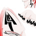 鰤の阿散井恋次の『額』『胸』『首』の刺青です。眉尻はありません。