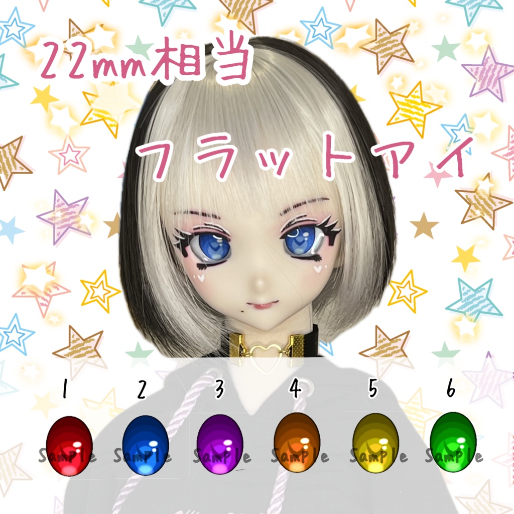 ドルフィードリームヘッド向けのアイです。 虹彩部分にはパール紙を使用しています。 ガラスカボションを使用しているため、多少の追視効果があります。 (モデルヘッド:DDH-10) 【内容物】 ガラスカボションアイ、1ペア 【材質】 UVレジン パール紙 ガラスカボション プラスチックチップ 【注意事項】 全て手作業で製作しております。 またガラスカボションの性質上、細かなキズや気泡の混入はご容赦ください。 カボションの接着にはUVレジンを使用しております。 UVレジンは黄変のし辛いものを使用しておりますが、保管方法、外出撮影や経年劣化などによりレジンの黄変が早く起こることがあります。 またカボションはガラス製のため、硬いものにぶつけたり、高いところから落とさないようご注意ください。 あくまで素人作品のため、既製品のような完成度はありません。ご理解のほどよろしくお願いいたします。