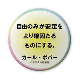 なるわん座招福缶バッジ(バリュー)名言サプリ(イギリスの哲学者カール・ポパー)安定を強めるもの