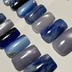 山姥切長義のカラーをイメージして作りました。 現品のみ。 片手8サイズ×両手分で合わせて16個の販売です。 ご自身の爪に合うサイズをご利用ください。 どんな組み合わせでもまとまるように作成しております。 チップについて詳しくはプロフィールをご覧下さい。 ハンドメイドのため、色ムラ、ダストが入ってしまう場合があります。 極力気をつけていますが、完璧を求める方は御遠慮ください。 写真と実物で若干色の見え方が異なることがあります。 - 色: グレー、青、黒(ジェルネイル使用) - デザイン: ニュアンス、マグネット - 仕上げ: 光沢仕上げ -形:スクエアオフ(写真は下側が爪の根元側です) -長さ:ミディアム ・チップ接着用テープ1枚 ・ウッドスティック1本 ・ミニやすり 同封しております。 ご覧いただきありがとうございます。