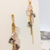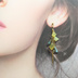 ご覧いただきましてありがとうございます。 こちらはラフスライスカットの天然石を使用したピアスです。 長さや太さを変えて揺れ方に差をつけた3本のゴールドチェーンと、 角にも細かくカットが入った小さな天然石が、揺れるたびにキラキラ輝きます。 ローズクォーツとコッパーピンクオパールを使ったお品は 上品で優しい雰囲気のピンク色が春にもぴったりな一品です。 コッパーピンクオパールは銅で天然石を接いだもので、金属と天然石の 異なる表情を一度に楽しめる天然石加工品です。 イエローオパールとコッパーアマゾナイトを使ったお品は 肌馴染の良いイエローと爽やかなブルーグリーンが明るく華やかな印象のお品です。 コッパーアマゾナイトはこちらも銅で天然石を接いだもので、金属の光沢と 独特の模様が美しい天然石加工品です。 <お客様へ> 金属アレルギーには個人差がございます。全ての方がアレルギー反応が出ないことを保証するものではございませんのでご注意ください。 ピアスポストはステンレス製ですが、イヤリングはアレルギー対応しておりません。ご了承ください。 天然石を使用しているため、一つ一つの石は少しずつ形や色が違います。これらも個性であるとご納得頂いた上でお求めいただければと思います。 手作り品のため、一つ一つ若干の個体差などがありますが、なるべく揃うように丁寧にお作りしています。繊細な部品もございますのであまり強く引っ張ったりせず、優しく付け外ししていただけるようお願い申し上げます。