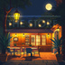 【イラスト素材】夜のカフェ1