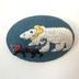 騎士っぽいしろくまと船長っぽいねこの刺繍ブローチです。 青地と黄色地の2種類。 ひとつずつ手刺繍になります。 【大きさ】 横×縦:約55㎜×40㎜ 厚さ:約10㎜ 【材質】 くるみボタン:綿・ポリプロピレン ブローチピン:真鍮(ニッケルメッキ) 【ご購入に当たって】 ・手刺繍のため、商品には個体差があります。ご了承ください。 ・商品の一部にプラスチックパーツを使用しています。高温により変形する恐れがあるため、アイロンの使用はご遠慮ください。 ・洗濯・ドライクリーニングはお避けください。 ・濡れた状態でご使用いただくと、色移りが発生する場合があります。お気をつけください。 ・強い力を与えると、破損する可能性があります。パーツが欠けた場合には、ご使用を中止してください。 ・端末により、お色味が違って見える可能性がございます。ご了承ください。