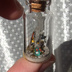 瓶・高さ約40mm 直径約15mm 主な材料・ガラス瓶、砂溶きボンド、エポキシパテ 箱サイズ56×35×17mm 灯火には蓄光塗料を使用しておりますので暗闇やUVライトで蛍光します。 ※注意事項 到着時の破損につきましては対応いたしますのでご連絡願います。 微に入り細に入り実物を見た際に見える細かな傷、 印象の違い、想像されていた色味との違い等 写真から判定できる明確な破損以外の事柄に関しては 対応できかねますのでご了承願います。 全て一点物になりますので個体差があります。 ガラス製品なので思わぬ衝撃で破損する恐れがあります。注意して取り扱ってください。 蓋のコルクは外れる恐れがあるのでアクセサリ等として使用することは絶対にお止めください。 収れん火災や劣化を避けるために直射日光を避けカビ予防のために高温多湿を避けて保管してください。 小さなお子様やペットがいるご家庭は誤飲にお気をつけください。 事故が起きましても責任を負いかねますので予めご了承ください。