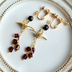 やっぱり動いて歌って(?)踊ってる(??)のを観ると、解像度上がるなぁと思いつつ、後家君をもう一回作ってみました。 彼のカラーリングの中に使いたかったグレー~ブラックを、メキシコ産シルバーシャインオブシディアンのラウンドビーズで再現。見る角度から、強いシルバーのシラーが見えます(長義くんにも使えそう、さすが長船) 正式にカラーリングが分かった折り鶴は、前回のよりも小さくて使いやすいものを。 キャライメージカラーのモザンビークガーネットは、贅沢めに使った方が見栄えがすると思い、盛ってみました。 今までシルバーで後家君作ってましたが、ゴールドで作るとまた違った雰囲気になりますね。個人的には、シルバーのイメージなんですがねぇ…(-ω-;)ウーン ピアス・イヤリング両対応ですので、お好みの金具でご購入下さい。 ●アレルギー対応商品について 当店ではピアス、イヤリング、チェーン、アジャスター等にサージカルステンレス316を使用時明記しております。 体質には個人差がありますので、必ずしもアレルギーが出ないという保証ではございません。 樹脂ピアスも取り扱っておりますので、そちらもご検討下さい。 ●色褪せ・錆について ステンレス以外の、錆びやすい材質のパーツとの組み合わせの場合、そのパーツの錆びがステンレス表面に付着し「もらい錆」により錆びてしまうケースがございます。 その際は錆びをすぐに除去するようにしてください。 また、水に濡らしたりアルコール・汗等が付着しないようご注意下さい。 ●レジン作品について レジン作品は非常に繊細な為、強い衝撃を与えたり、高温・直射日光に長時間さらさないようご留意下さい。 また、水濡れやアルコール、汗などは劣化の原因となる為、触れないようにご注意下さい。 ●天然石について 当店では天然石を使用している場合、その種類を明記しております。天然石の一部は長時間の直射日光や水分に弱いものが多いです。アクセサリー用に加工されているものを仕入れておりますが、水に濡らしたり長時間直射日光にさらさないよう、ご注意下さい。