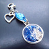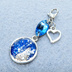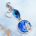 マスク・スマホチャーム ブルーレジンで彩色した蝶の羽とアクアマリンのスワロフスキーのチャーム 金具変更可