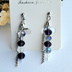 以前(遥か以前)作った水心子くんのリメイクです。 パープルのラスターが薄っすらかかった、ボタンガラスがアクセント。 まだこの頃は、よくアシメントリーな作品を作っていましたねぇ。 最近は全然ですが、久々に作りたくなってきますね。 ピアス・イヤリング両対応ですので、お好みの金具でご購入下さい。 ●アレルギー対応商品について 当店ではピアス、イヤリング、チェーン、アジャスター等にサージカルステンレス316を使用時明記しております。 体質には個人差がありますので、必ずしもアレルギーが出ないという保証ではございません。 樹脂ピアスも取り扱っておりますので、そちらもご検討下さい。 ●色褪せ・錆について ステンレス以外の、錆びやすい材質のパーツとの組み合わせの場合、そのパーツの錆びがステンレス表面に付着し「もらい錆」により錆びてしまうケースがございます。 その際は錆びをすぐに除去するようにしてください。 また、水に濡らしたりアルコール・汗等が付着しないようご注意下さい。 ●レジン作品について レジン作品は非常に繊細な為、強い衝撃を与えたり、高温・直射日光に長時間さらさないようご留意下さい。 また、水濡れやアルコール、汗などは劣化の原因となる為、触れないようにご注意下さい。 ●天然石について 当店では天然石を使用している場合、その種類を明記しております。天然石の一部は長時間の直射日光や水分に弱いものが多いです。アクセサリー用に加工されているものを仕入れておりますが、水に濡らしたり長時間直射日光にさらさないよう、ご注意下さい。