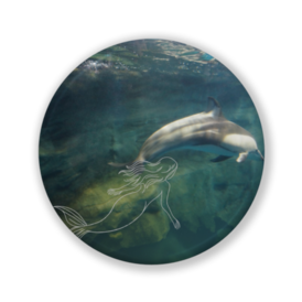 缶バッジ(バリュー) - 32mm海を駆ける夢を、そっと胸に。 透明な海の中を自由に泳ぐイルカと、白い線画の人魚を重ねた幻想的なデザインの缶バッジです。 バッグやポーチに、小さな物語を添えてみませんか? 【仕様】 サイズ:32mm 素材:ブリキ この商品はpixivFACTORYで作られた商品です。サンプル画像は完成イメージのため、実物と異なる場合があります。