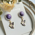 天然チャロアイトのカボションを仕入れたのですが、使い方を悩んでじーっと眺めていたら、歌仙さんの髪色に見えてきたので作ってみました。 光の当たり具合でシルキーなシラーが見られる、上質のロシア産チャロアイトをパールで飾り、極イメージの蝶のチャームを下げたピアスです。 ピアスはサージカルステンレス316を使用しています。 チャロアイトはコーティングをしていますが、長時間の直射日光にはご注意下さい。 パーツの都合上、現在は現品限りです。 ●アレルギー対応商品について 当店ではピアス、イヤリング、チェーン、アジャスター等にサージカルステンレス316を使用時明記しております。 体質には個人差がありますので、必ずしもアレルギーが出ないという保証ではございません。 樹脂ピアスも取り扱っておりますので、そちらもご検討下さい。 ●色褪せ・錆について ステンレス以外の、錆びやすい材質のパーツとの組み合わせの場合、そのパーツの錆びがステンレス表面に付着し「もらい錆」により錆びてしまうケースがございます。 その際は錆びをすぐに除去するようにしてください。 また、水に濡らしたりアルコール・汗等が付着しないようご注意下さい。 ●レジン作品について レジン作品は非常に繊細な為、強い衝撃を与えたり、高温・直射日光に長時間さらさないようご留意下さい。 また、水濡れやアルコール、汗などは劣化の原因となる為、触れないようにご注意下さい。 ●天然石について 当店では天然石を使用している場合、その種類を明記しております。天然石の一部は長時間の直射日光や水分に弱いものが多いです。アクセサリー用に加工されているものを仕入れておりますが、水に濡らしたり長時間直射日光にさらさないよう、ご注意下さい。