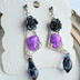 ワイヤーを使ったデザインを作りたいと何度かチャレンジしてるんですが、中々上手くはいきませんね😢 刀派モチーフの三角にワイヤー装飾をして、金粉を塗したミッドナイトカラーのドロップビーズを下げました。 形は面白いと思うんですが、次回があればもっと器用に作りたいです… ピアス・イヤリング両対応ですので、お好みの金具でご購入下さい。 ●アレルギー対応商品について 当店ではピアス、イヤリング、チェーン、アジャスター等にサージカルステンレス316を使用時明記しております。 体質には個人差がありますので、必ずしもアレルギーが出ないという保証ではございません。 樹脂ピアスも取り扱っておりますので、そちらもご検討下さい。 ●色褪せ・錆について ステンレス以外の、錆びやすい材質のパーツとの組み合わせの場合、そのパーツの錆びがステンレス表面に付着し「もらい錆」により錆びてしまうケースがございます。 その際は錆びをすぐに除去するようにしてください。 また、水に濡らしたりアルコール・汗等が付着しないようご注意下さい。 ●レジン作品について レジン作品は非常に繊細な為、強い衝撃を与えたり、高温・直射日光に長時間さらさないようご留意下さい。 また、水濡れやアルコール、汗などは劣化の原因となる為、触れないようにご注意下さい。 ●天然石について 当店では天然石を使用している場合、その種類を明記しております。天然石の一部は長時間の直射日光や水分に弱いものが多いです。アクセサリー用に加工されているものを仕入れておりますが、水に濡らしたり長時間直射日光にさらさないよう、ご注意下さい。