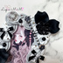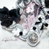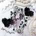 グレー 白 ホイップデコ 硬質トレカケース ゴシック調 黒 花 ストーン リボン カード ケース