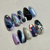 ご覧いただきありがとうございます₍ᐢ.ˬ.ᐢ₎ …………………………………… ★こちらは【現品サイズ】の購入ページになります!★ チップの形:アーモンド 右【1.5.4.5.7】 左【1.5.4.5.7】 発送後、サイズが合わない場合でも返金・返品はできかねますのでお間違いのないようによろしくお願い致します。 …………………………………… 【セット内容】 ・ネイルチップ(10本) ・ネイルシール1枚 【爪のサイズ確認方法】 爪の一番広い横幅を柔らかいメジャーで爪のカーブにそわせて測定してください。 ぴったりのサイズよりも1サイズ大きめを選んで頂くことをおすすめします。 【注意】 ・お使いの端末や閲覧環境により、写真と実物の色味や質感が多少異なって見えることがございます。 ・1つ1つ手作業で制作しております。 色や形に若干の違いが生じる場合がございますのでご了承頂ける方のみよろしくお願いいたします。 ・こちらのデザインはサイズオーダーも可能です。 ✉よりお気軽にご連絡ください₍ᐢ.ˬ.ᐡ₎ .ᐟ ネイルチップの形も12種類の中から選択可能です◎
