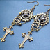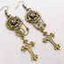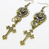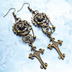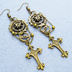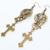 アンティークゴールド ロザリオと歯車のスチームパンク風ピアス チェーン ゴシック